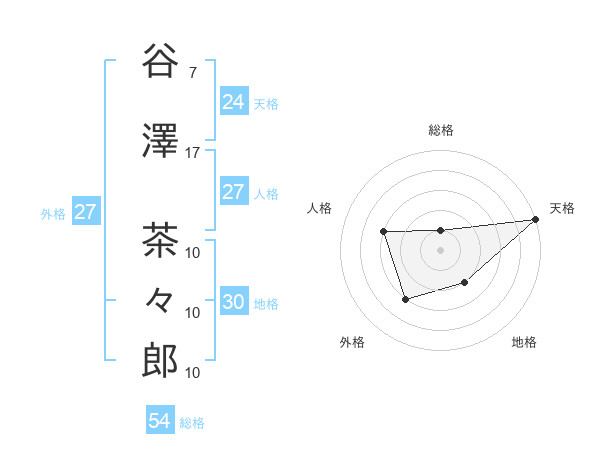 谷澤 茶々郎さんを姓名の画数から五運を鑑定