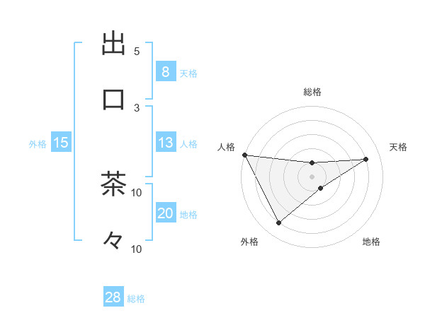 出口 茶々さんの総格は28画の1点!