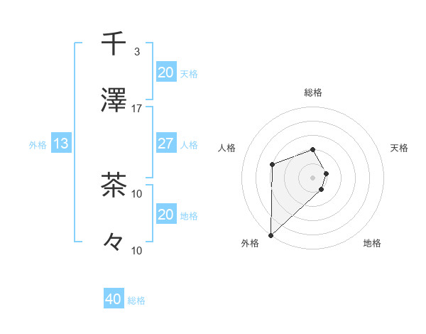 千澤 茶々さんを姓名の画数から五運を鑑定