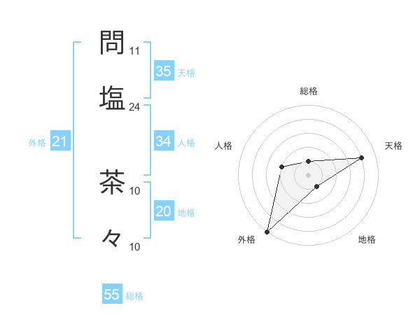 問塩 茶々さんの総格は55画の1点!
