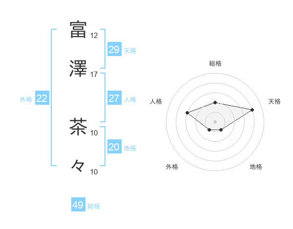 富澤 茶々さんの総格は49画の2点!