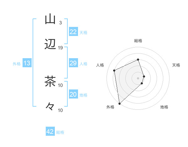 山辺 茶々さんを姓名の画数から五運を鑑定