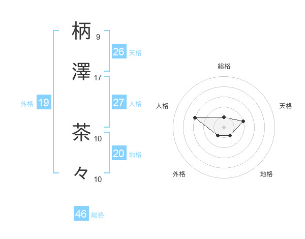 柄澤 茶々さんの総格は46画の1点!