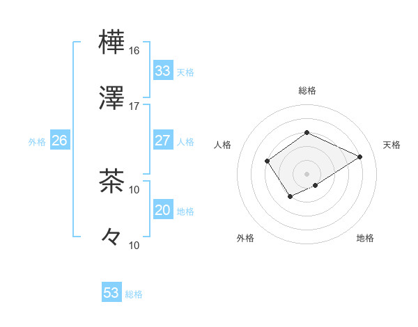 樺澤 茶々さんの総格は53画の3点!