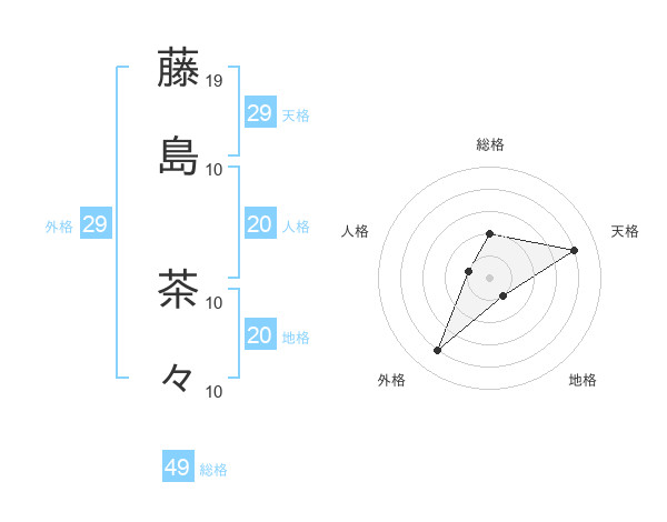 藤島 茶々さんの天格は29画の4点!
