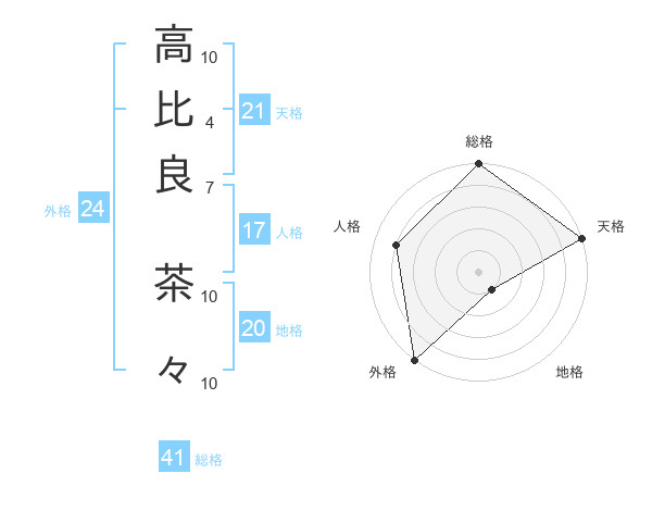 高比良 茶々さんの天格は21画の5点!