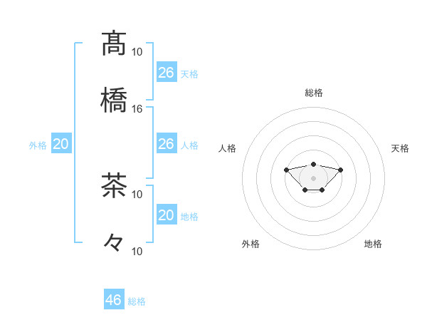 髙橋 茶々さんの総格は46画の1点!