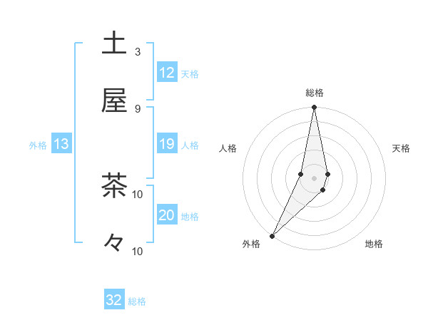 土屋 茶々さんを姓名の画数から五運を鑑定