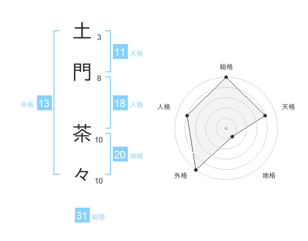 土門 茶々さんの総格は31画の5点!