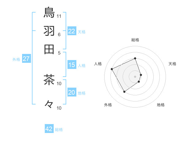 鳥羽田 茶々さんの総格は42画の3点!