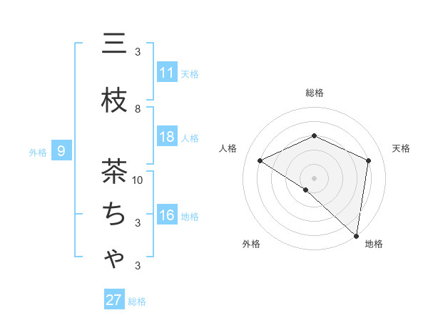 三枝 茶ちゃさんを姓名の画数から五運を鑑定