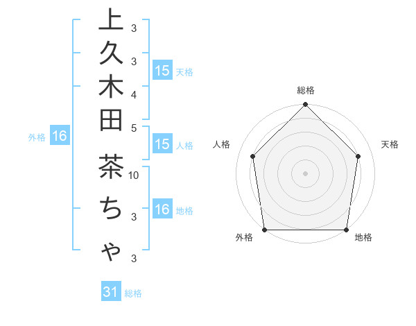 上久木田 茶ちゃさんを姓名の画数から五運を鑑定