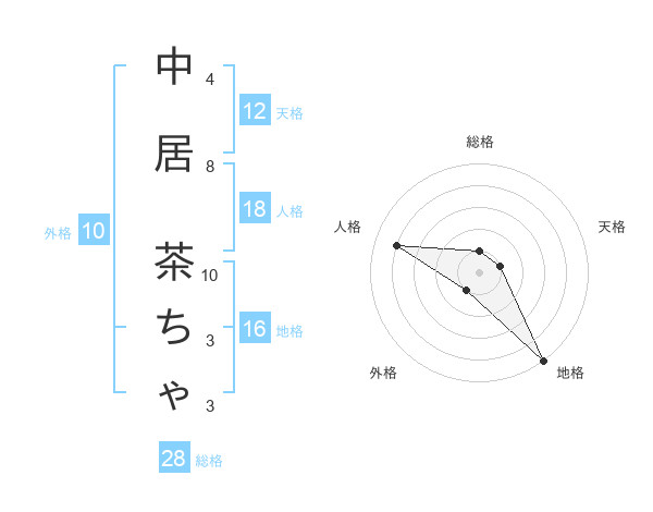 中居 茶ちゃさんを姓名の画数から五運を鑑定