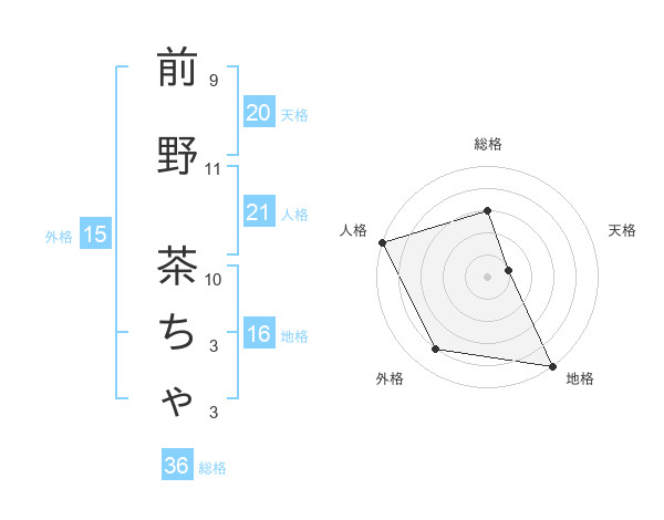 前野 茶ちゃさんを姓名の画数から五運を鑑定
