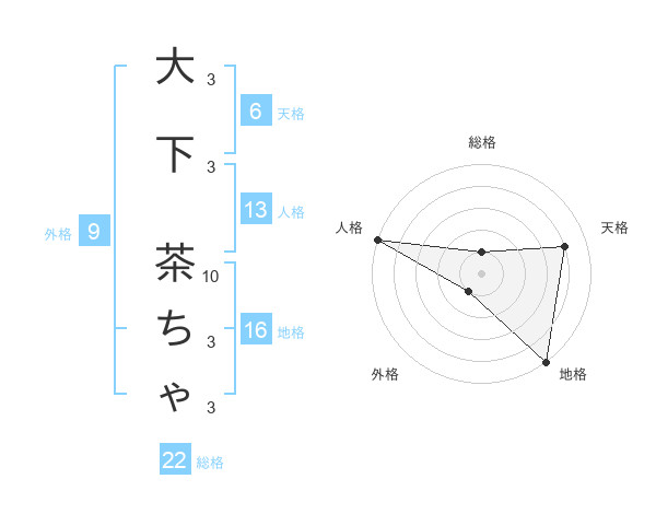 大下 茶ちゃさんの総格は22画の1点!