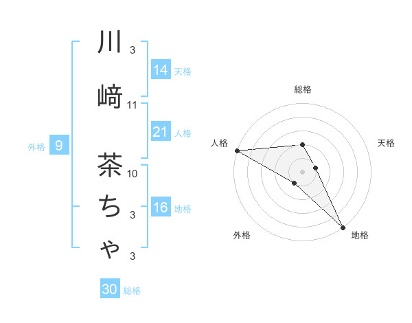 川﨑 茶ちゃさんを姓名の画数から五運を鑑定