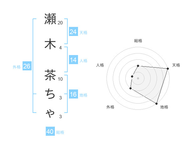 瀬木 茶ちゃさんの天格は24画の5点!