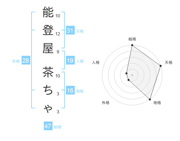 能登屋 茶ちゃさんの名前の鑑定結果は!