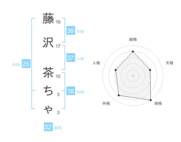 藤沢 茶ちゃさんの総格は52画の4点!