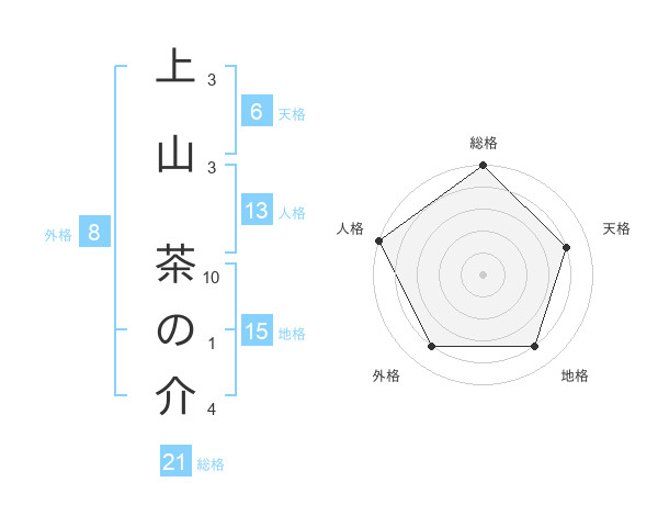 上山 茶の介さんを姓名の画数から五運を鑑定