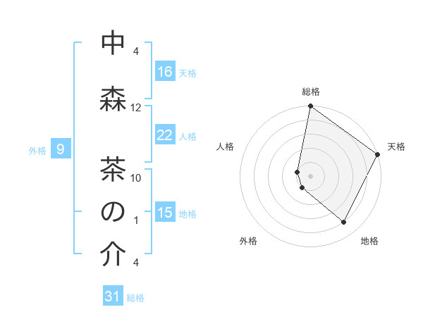 中森 茶の介さんを姓名の画数から五運を鑑定