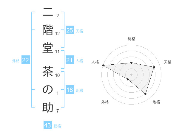 二階堂 茶の助さんの天格は25画の4点!