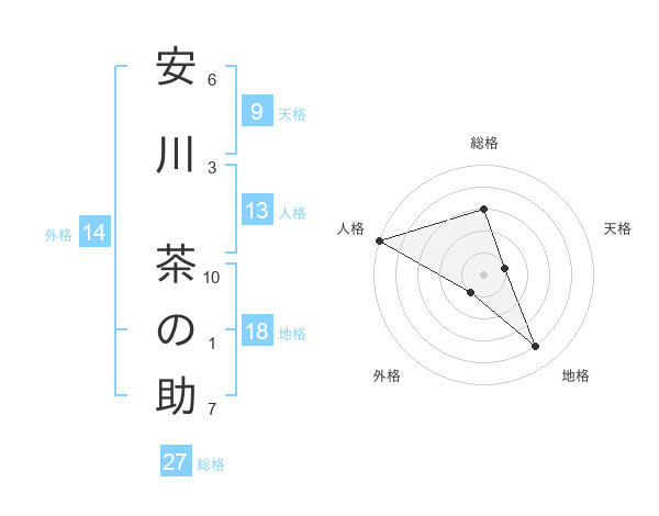 安川 茶の助さんの総格は27画の3点!