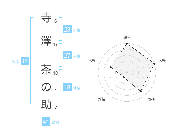 寺澤 茶の助さんを姓名の画数から五運を鑑定