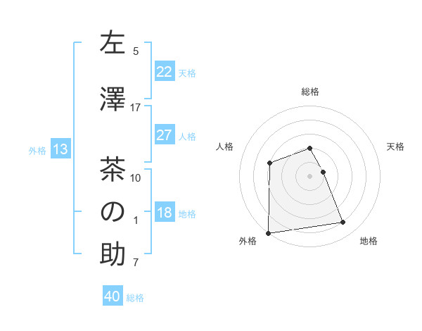 左澤 茶の助さんを姓名の画数から五運を鑑定
