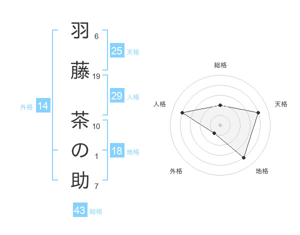羽藤 茶の助さんの総格は43画の2点!