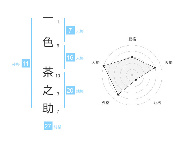 一色 茶之助さんの総格は27画の3点!