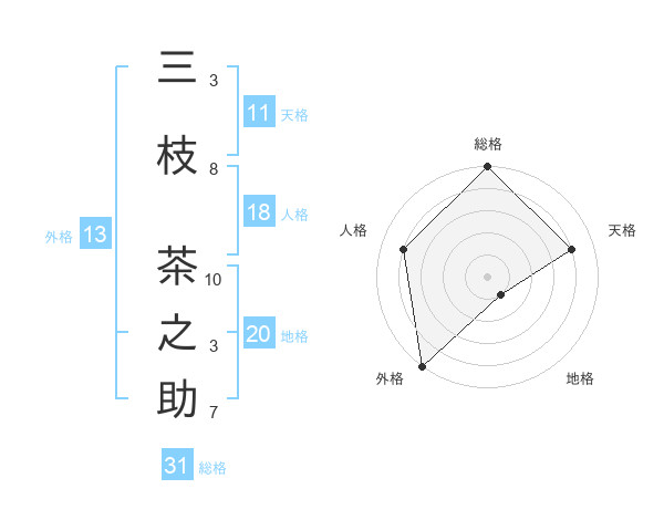 三枝 茶之助さんの総格は31画の5点!