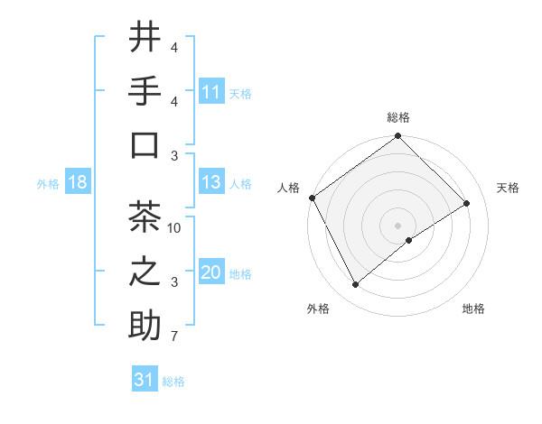 井手口 茶之助さんの総格は31画の5点