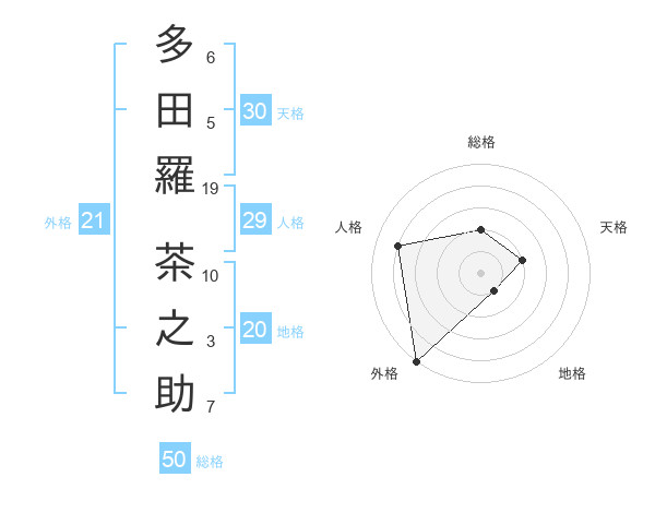 多田羅 茶之助さんの外格は21画の5点!