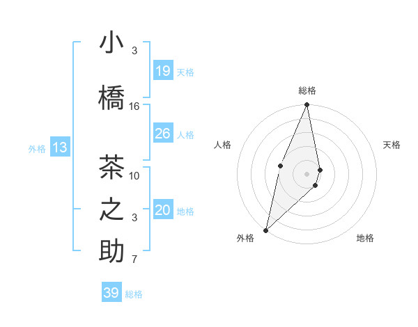 小橋 茶之助さんを姓名の画数から五運を鑑定