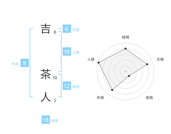 吉 茶人さんの総格は18画の4点!
