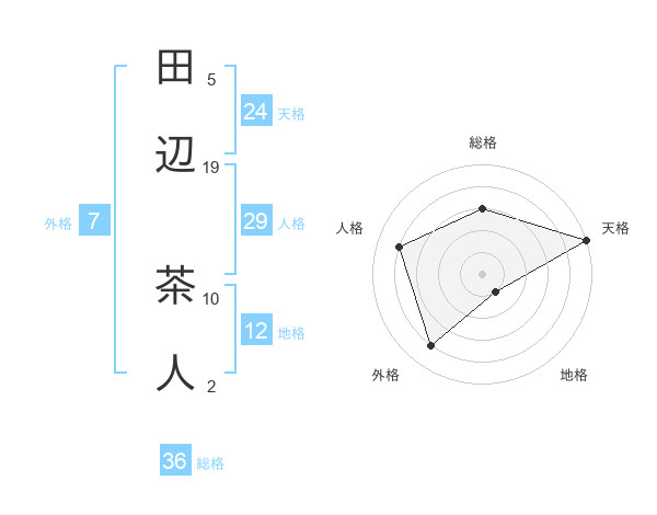 田辺 茶人さんを姓名の画数から五運を鑑定
