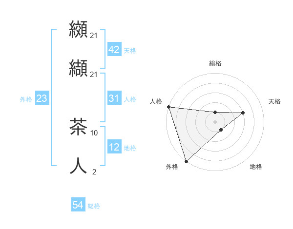 纐纈 茶人さんの総格は54画の1点!