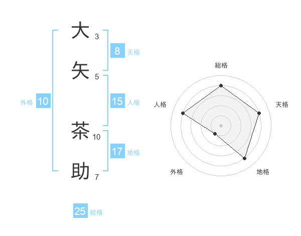 大矢 茶助さんを姓名の画数から五運を鑑定
