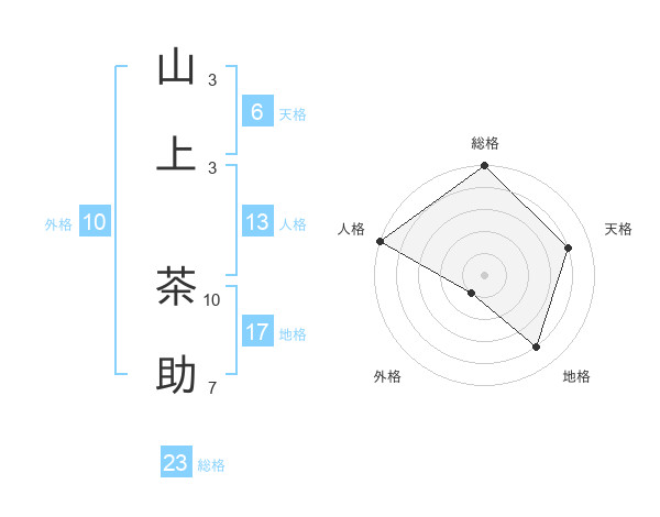 山上 茶助さんの総格は23画の5点!