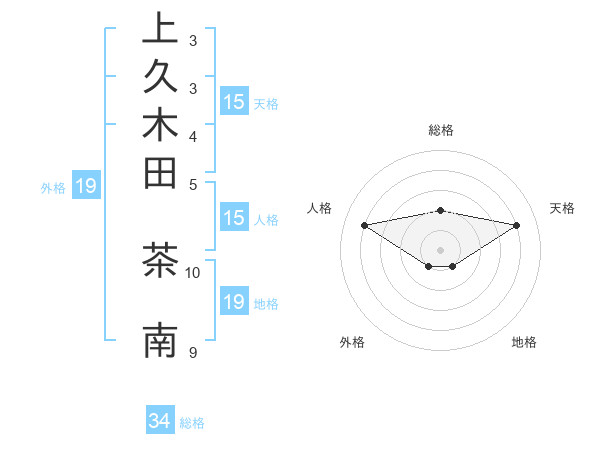 上久木田 茶南さんを姓名の画数から五運を鑑定