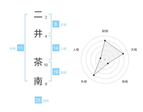 二井 茶南さんの総格は25画の4点!