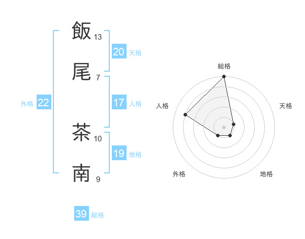飯尾 茶南さんの総格は39画の5点!