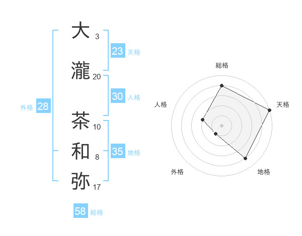 大瀧 茶和弥さんの天格は23画の5点!