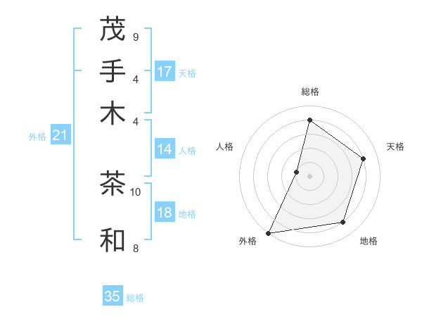 茂手木 茶和さんを姓名の画数から五運を鑑定