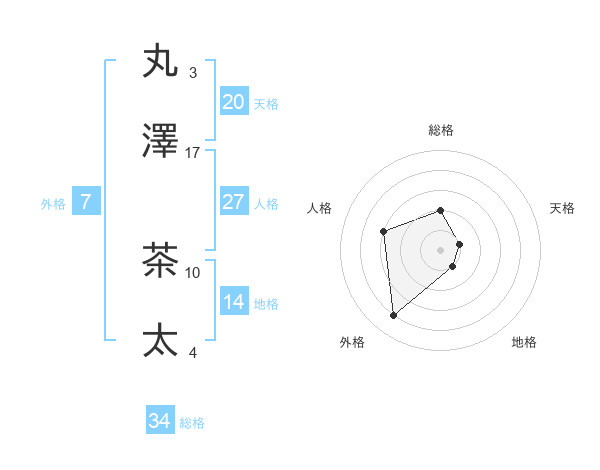 丸澤 茶太さんを姓名の画数から五運を鑑定