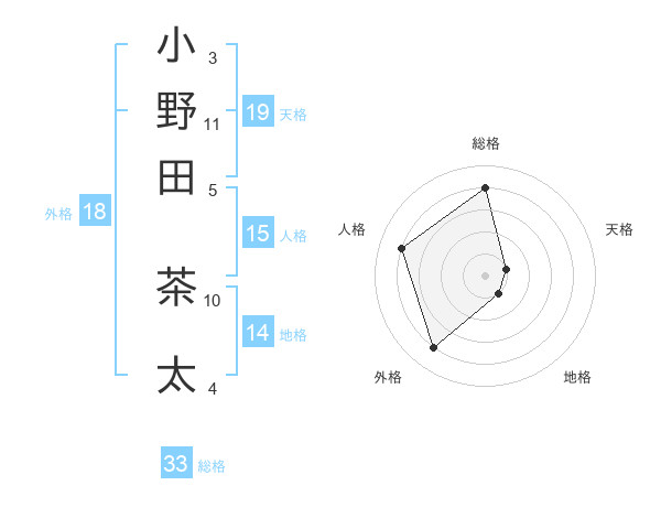小野田 茶太さんを姓名の画数から五運を鑑定