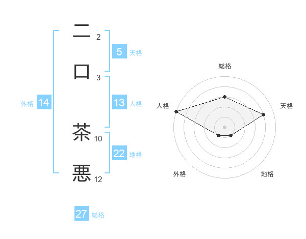 二口 茶悪さんの総格は27画の3点!