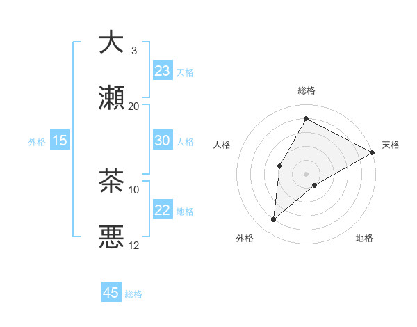 大瀬 茶悪さんを姓名の画数から五運を鑑定