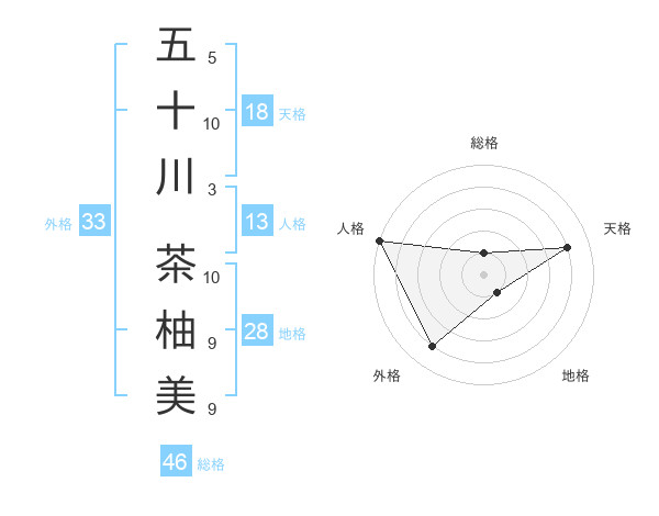 五十川 茶柚美さんを姓名の画数から五運を鑑定